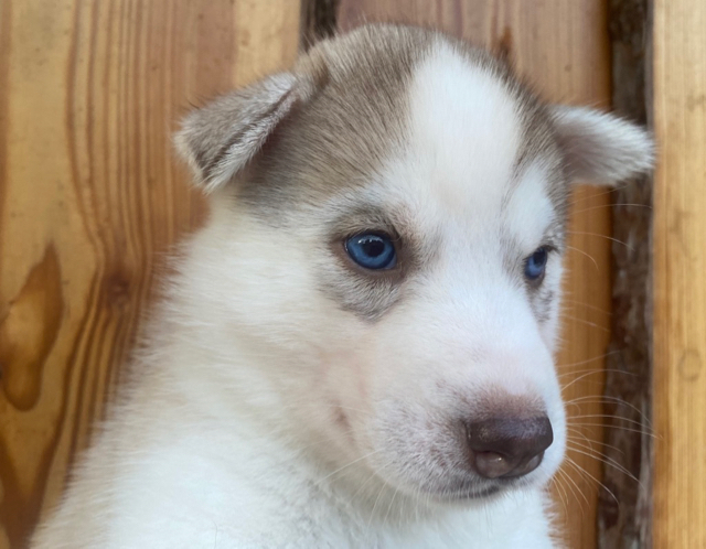 Cette femelle grise & blanche aux yeux bleus est la représentation « parfaite » du Husky.